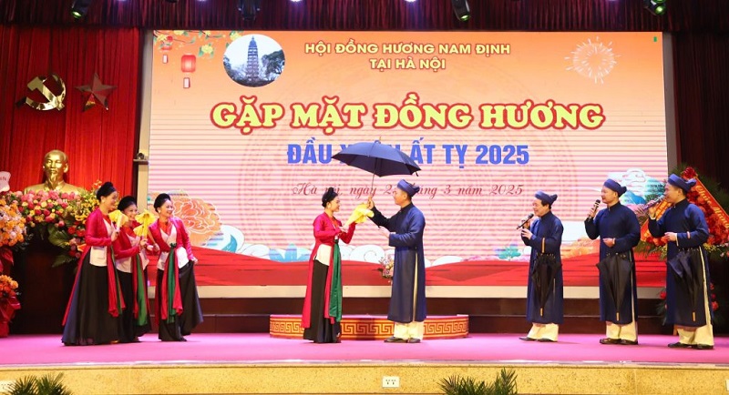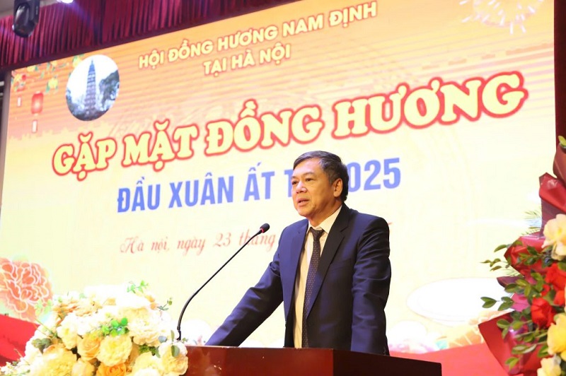 Phát biểu khai mạc buổi gặp mặt, PGS.TS Nguyễn Thành Lợi, Phó Chủ tịch Hội đồng hương Nam Định nhấn mạnh: “Hội đồng hương Nam Định tại Hà Nội không chỉ là nơi hướng về quê cha đất tổ, mà còn là nơi gắn kết tình thân ái, sẻ chia tình cảm của những người con thành Nam. Tôi tin tưởng rằng với mỗi người con Nam Định xa quê, dù đi đâu làm gì, quê hương vẫn là một phần máu thịt, là nguồn cội thiêng liêng nuôi dưỡng tâm hồn. Nhắc đến Nam Định, chúng ta không chỉ nhớ đến vùng đất văn hiến của truyền thống hiếu học mà còn là nơi hội tụ những người con nghĩa tình, đoàn kết và kiên cường. Ngày hôm nay giữa bộn bề cuộc sống, lo toan cơm áo gạo tiền chúng ta vẫn dành thời gian để gặp nhau, để ôn lại những ký ức tuổi thơ, để cùng nhau kể về những đổi thay của quê hương, đất nước, để động viên nhau vững bước trên chặng đường phía trước. Điều đó thể hiện một tình cảm đặc biệt, tình đồng hương thiêng liêng mà không gì có thể thay thế”.