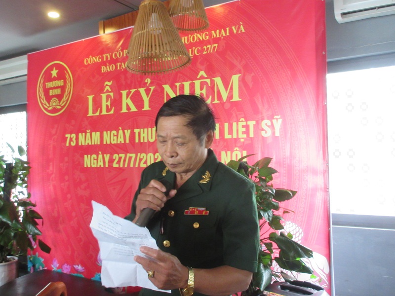 Ông Lê Hồng Quang, AHLĐ thời kỳ đổi mới, Phó Chủ tịch Thường trực Hiệp hội tới dự và phát biểu. Ông nói: “thay mặt Lãnh đạo Hiệp hội, tôi biểu dương các đồng chí Lãnh đạo và người lao động của Công ty đã nhiệt tình làm việc để Công ty ngày càng phát triển, làm tốt công tác chăm lo đến đời sống của các gia đình thương, bệnh binh trong Công ty và các gia đình chính sách khác có hoàn cảnh khó khăn ở các vùng miền.”.
