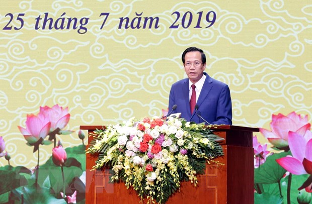 | Bộ trưởng Bộ Lao động-Thương binh và Xã hội Đào Ngọc Dung phát biểu tại buổi gặp mặt. (Ảnh: Anh Tuấn/TTXVN) |