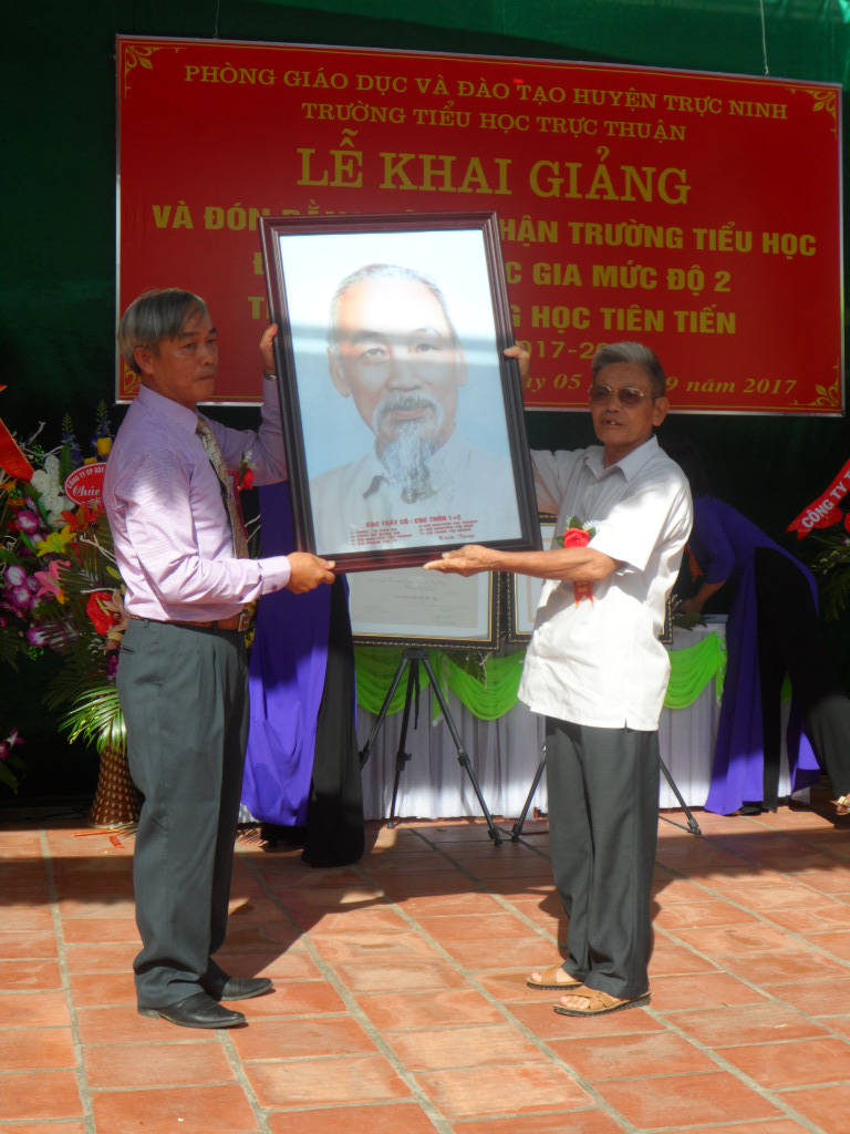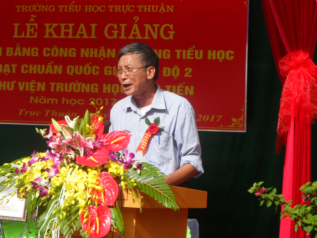 Tại lễ khai giảng năm học mới, ông Ngô Văn Nhẫn, Chủ tịch UBND xã Trực Thuận, huyện Trực Ninh, tỉnh Nam Định đã đọc Thư chúc mừng của Chủ tịch nước Trần Đại Quang. Thầy giáo Trần Thanh Lê, Hiệu trưởng Trường Tiểu học Trực Thuận đã đọc báo cáo xây dựng trường đạt chuẩn quốc gia mức độ 2, thư viện trường học tiên tiến, tuyên bố khai giảng năm học mới và đánh trống khai trường.