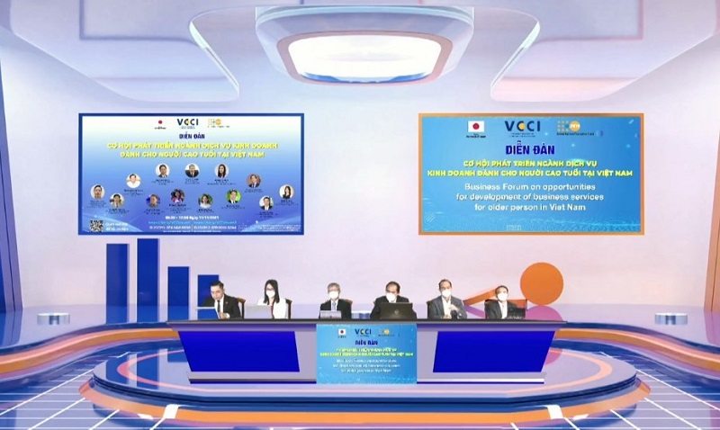 Các diễn giả tham gia Diễn đàn Diễn đàn Cơ hội Phát triển ngành dịch vụ kinh doanh dành cho người cao tuổi tại Việt Nam, do VCCI-HCM phối hợp với Quỹ dân số Liên hiệp quốc (UNFPA) tổ chức.
