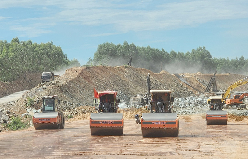 Các nhà thầu đẩy nhanh tiến độ thi công dự án đường bộ cao tốc Bắc-Nam đoạn qua huyện Quảng Trạch