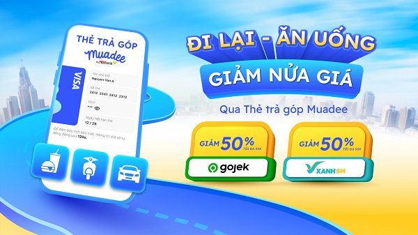 Từ nay đến 14/10, khách hàng lần đầu liên kết và thanh toán bằng Thẻ trả góp Muadee trên ứng dụng Gojek sẽ được tận hưởng ưu đãi giảm đến 50% giá cước, cụ thể như: GoCar - Giảm 50% tối đa 50.000 đồng, GoFood - Giảm 50% tối đa 30.000 đồng , GoRide - Giảm 50% tối đa 15.000 đồng.