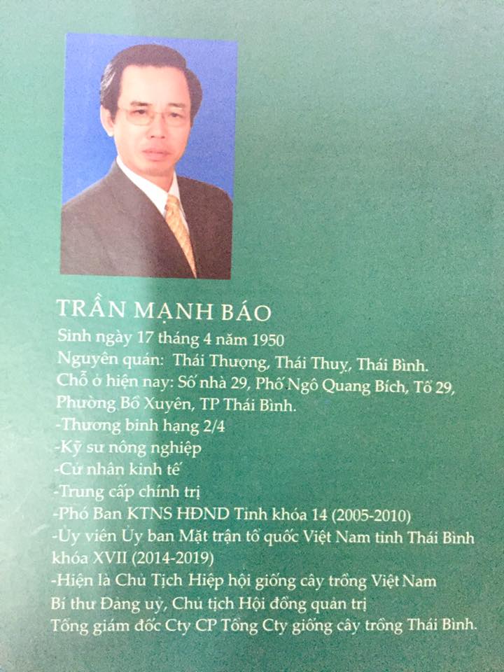 Rời tay súng về với cánh đồng, cựu chiến binh, thương binh kỹ sư Trần Mạnh Báo đã thực hiện được ước vọng từ ngày đi đánh giặc. Ông đã cùng các cộng sự đưa Thái Bình seed trở thành doanh nghiệp khoa học công nghệ đầu tiên của tỉnh Thái bình, từ một công ty sản xuất giống nhỏ của tỉnh nay trở thành một công ty hàng đầu trong ngành giống cây trồng Việt Nam. Là Chủ tịch hiệp hội thương mại giống cây trồng Việt Nam, Tổng giám đốc Thái Bình seed, kỹ sư thương binh Trần Mạnh Báo còn có tên thân mật khác mà nông dân trìu mến đặt cho, đó là “Giám đốc của nông dân ”.