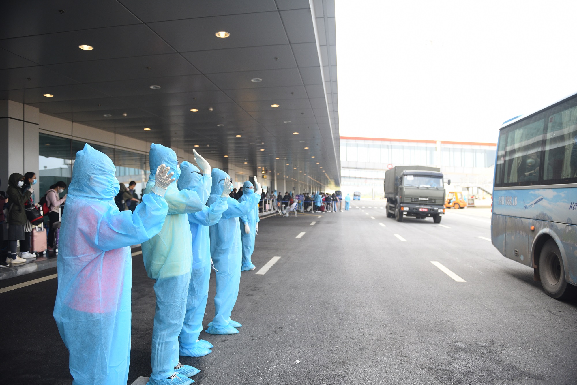 Sân bay Vân Đồn đã xây dựng quy trình đặc biệt đón các chuyến bay từ vùng dịch. Đó là một quy trình hoàn toàn ngoài trời, tại sân đỗ máy bay, không ảnh hưởng tới hoạt động của nhà ga. Máy bay đậu ở bãi đỗ xa, sau đó xe bus chở hành khách đến khu vực làm thủ tục gồm: kiểm tra thân nhiệt, làm tờ khai y tế điện tử, thủ tục xuất nhập cảnh, hải quan, lấy hành lý, sau đó lên các xe quân sự đi thẳng đến nơi cách ly.