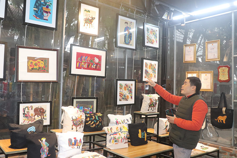 Giám đốc Hợp tác xã Vụn Art Lê Việt Cường giới thiệu sản phẩm được tạo nên từ bàn tay của những người khuyết tật.