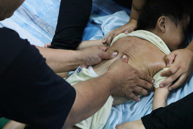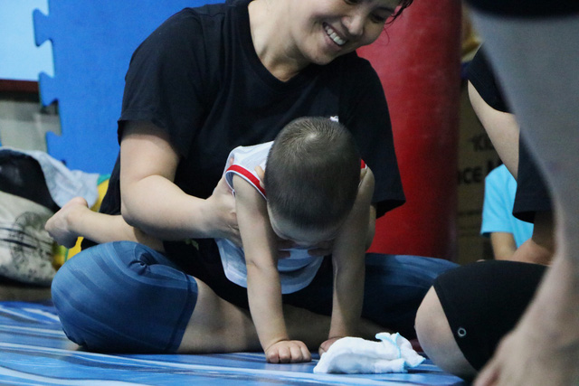 “Hồi bé mới lên đây, bé không biết gì hết, không ngồi được, cô chỉ có thể ẵm bé trên tay thôi. Hiện tại bé đã ngồi vững rồi và cô kêu tên bé bé cũng biết. Hồi trước 2 bàn tay bé nắm chặt lại không mở ra được còn bây giờ bé mở ra được mà còn biết vỗ tay nữa”, bà ngoại cô bé xúc động chia sẻ.