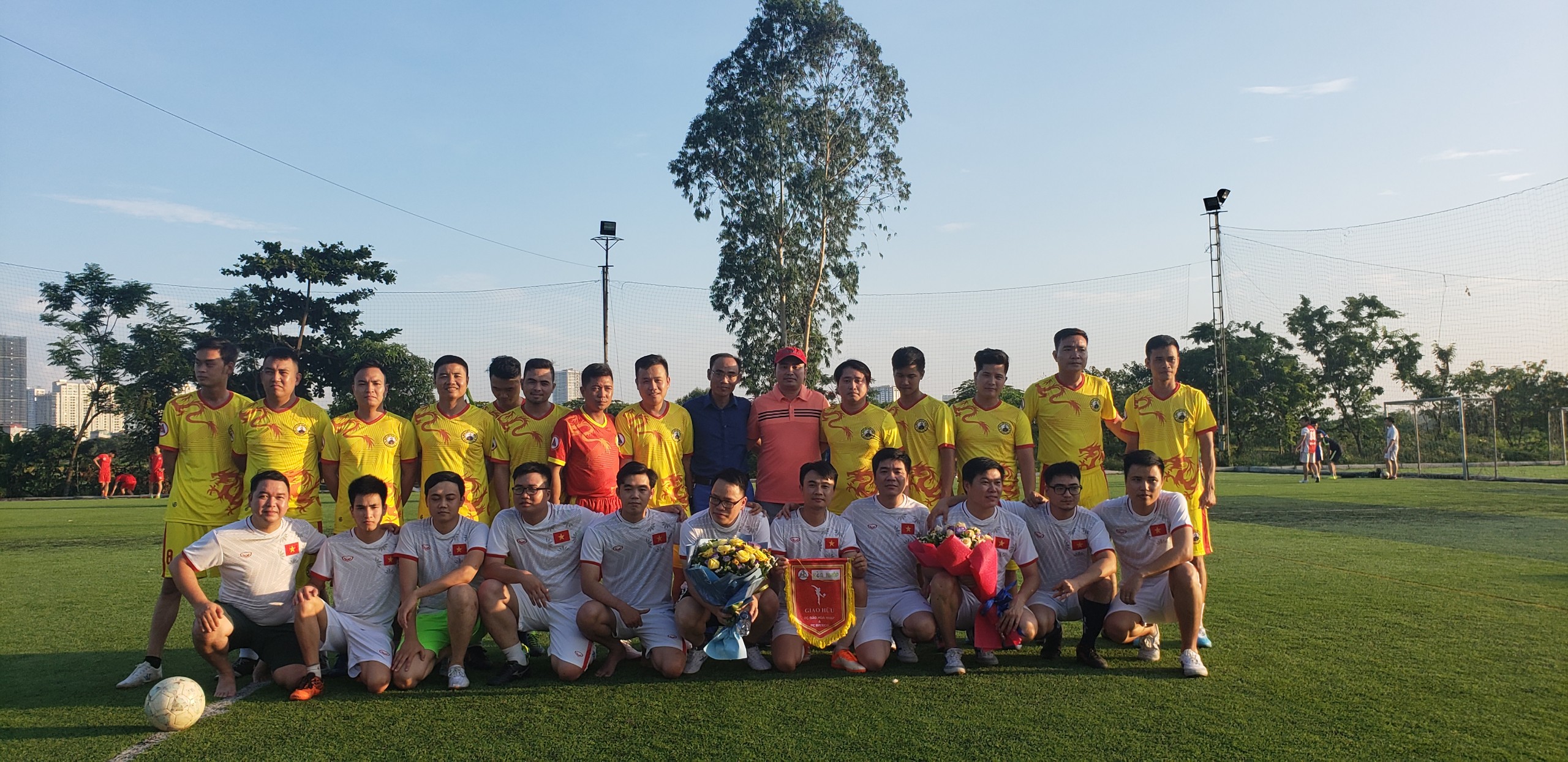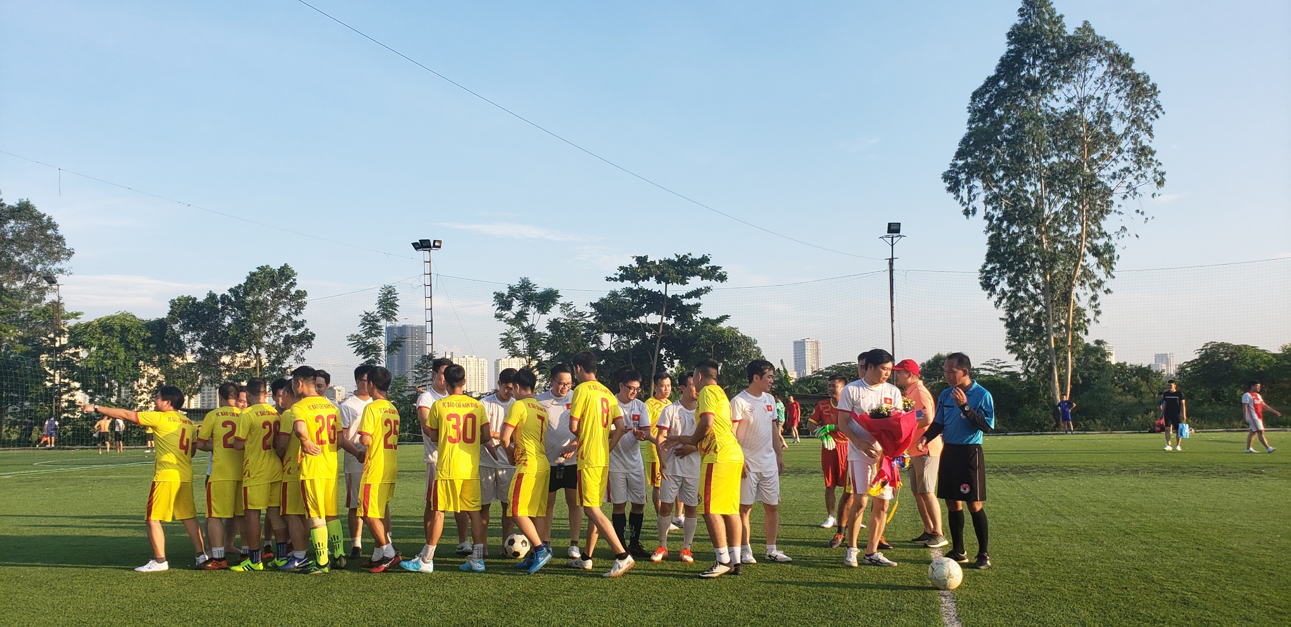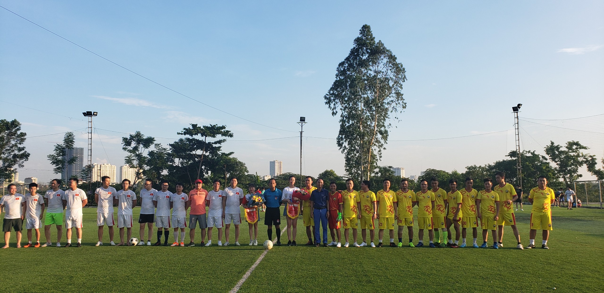 Các cầu thủ của hai đội bóng Tạp chí điện tử Hòa Nhập và công ty Bateco
