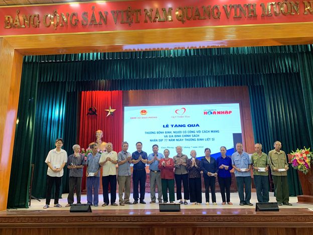 Buổi lễ tặng quà còn có sự đồng hành của Quỹ Thiện tâm - Tập đoàn Vingroup với những suất quà nhằm tri ân các Thương binh - Liệt sỹ, những người có công với cách mạng. Những phần quà tuy nhỏ nhưng mang ý nghĩa tinh thần lớn lao, đây là lời động viên sự biết ơn của thế hệ trẻ đến với những người đi trước, những người đã góp công làm nên đất nước ngày hôm nay.