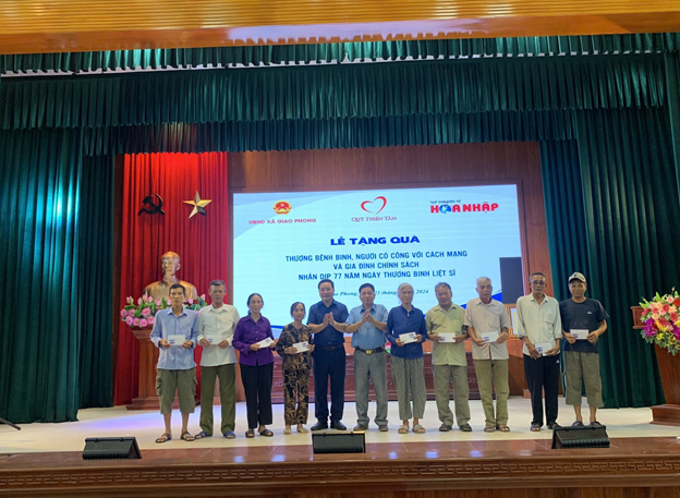 Trong không khí tháng 7 linh thiêng, tháng của sự tri ân và nghĩa tình, xã Giao Phong cũng tổ chức một số các sự kiện, các chương trình trong đó có các hoạt động thăm tặng quà gia đình chính sách. Hôm nay, Tạp chí điện tử Hòa nhập đại diện cho các nhà hảo tâm gửi tới những phần quà dù giá trị vật chất không lớn nhưng lại mang nhiều giá trị tinh thần. Đại diện ban lãnh đạo xã Giao Phong, Ông Phạm Văn Sơn gửi lời cám ơn tới Tạp chí Hòa nhập cũng như các nhà hảo tâm đã có lời động viên tới đối tượng là thương bệnh binh, người có công với cách mạng. Hy vọng, chuỗi hoạt động trong tháng 7 của tạp chí sẽ thành công tốt đẹp, chúc Tạp chí ngày càng tổ chức được nhiều chương trình ý nghĩa hơn nữa.