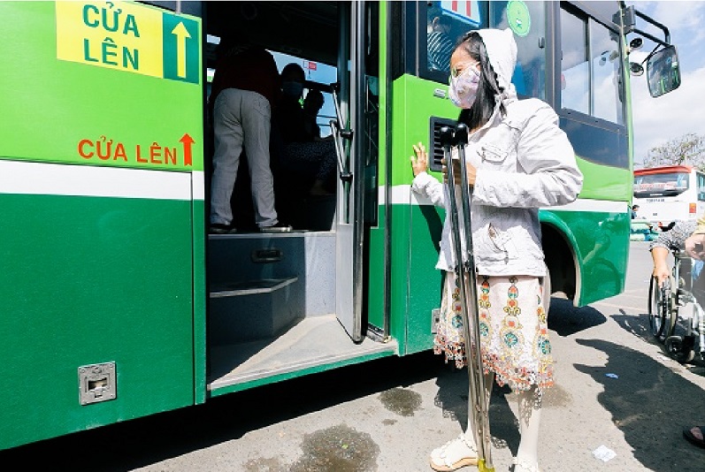 Lựa chọn phương án đi các dịch vụ giao thông công cộng sẵn có hiện nay vừa phù hợp với điều kiện kinh tế và phù hợp với sức khỏe của NKT. Tuy nhiên, hệ thống phương tiện công cộng hiện nay hầu như chưa phù hợp và “thân thiện” với người khuyết tật dù đã được các cơ quan chức năng tính toán nhiều.