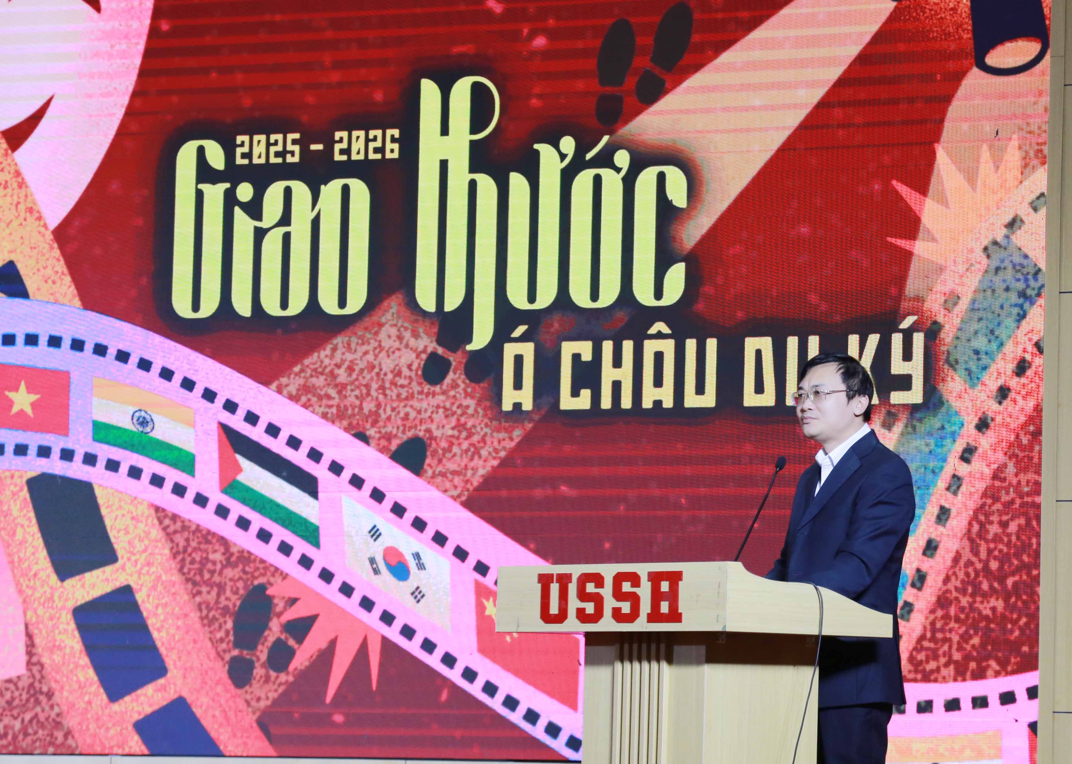 TS. Trần Thanh Việt – Giáo viên Trường THPT Chuyên Khoa học Xã hội và Nhân Văn phát biểu khai mạc Chặng 4 “Giao thước 2025: Á Châu du ký”.