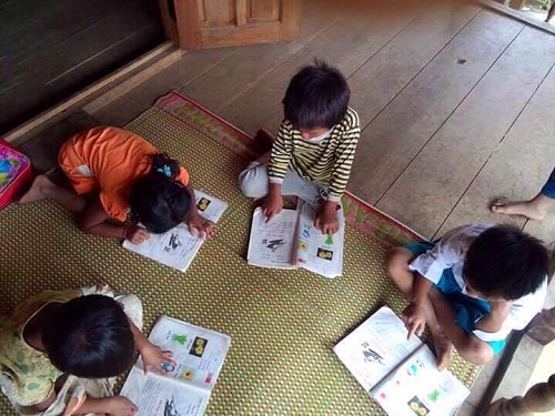 Nhìn đôi bàn tay nhỏ nâng niu lật từng trang sách giáo khoa không còn thơm mùi giấy mới, vừa được các anh chị quyên góp gửi tặng, em tập đọc, em tập tô, em thì chăm chú nhìn theo từng hình vẽ sinh động mới thấy sự ham học của các em nhỏ nơi đây.