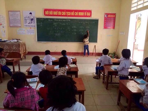 Không chỉ thiếu thốn về cái ăn, cái mặc, chuyện thiếu sách, thiếu vở đến trường đối với các em là chuyện xảy ra thường ngày. “Đầu năm học, đối với học sinh lớp lớn thì còn có quà, phần thưởng từ năm học trước để lại, ai còn thiếu gì thì nhắc phụ huynh mua thêm cho con. Nhưng đối với học sinh lớp 1 thì khác, các em từ mầm non lên, có ít gia đình chuẩn bị đầy đủ cho con đi học nên thường thì giáo viên tự mua cho các em như vở ô li để các em tập viết đúng độ cao chữ, hay các dụng cụ học tập: bút chì, tẩy... để các em học tập.”, cô Hương cho biết.