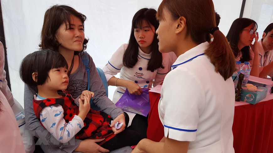 Khám, tư vấn sức khỏe cho trẻ tự kỷ trong Ngày hội Vòng tay yêu thương lần thứ ba, do Cung thiếu nhi Hà Nội tổ chức (2/4/2017). (Ảnh: Kim Anh/TTXVN)