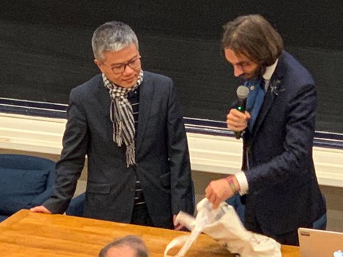 | GS Ngô Bảo Châu và GS. Cédric Villani - Chủ tịch hội đồng trao giải - Ảnh do Viện Nghiên cứu cao cấp về toán cung cấp |