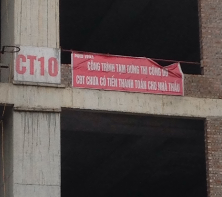 Do chủ đầu tư nợ tiền công, nhà thầu treo băng rôn tố cáo.