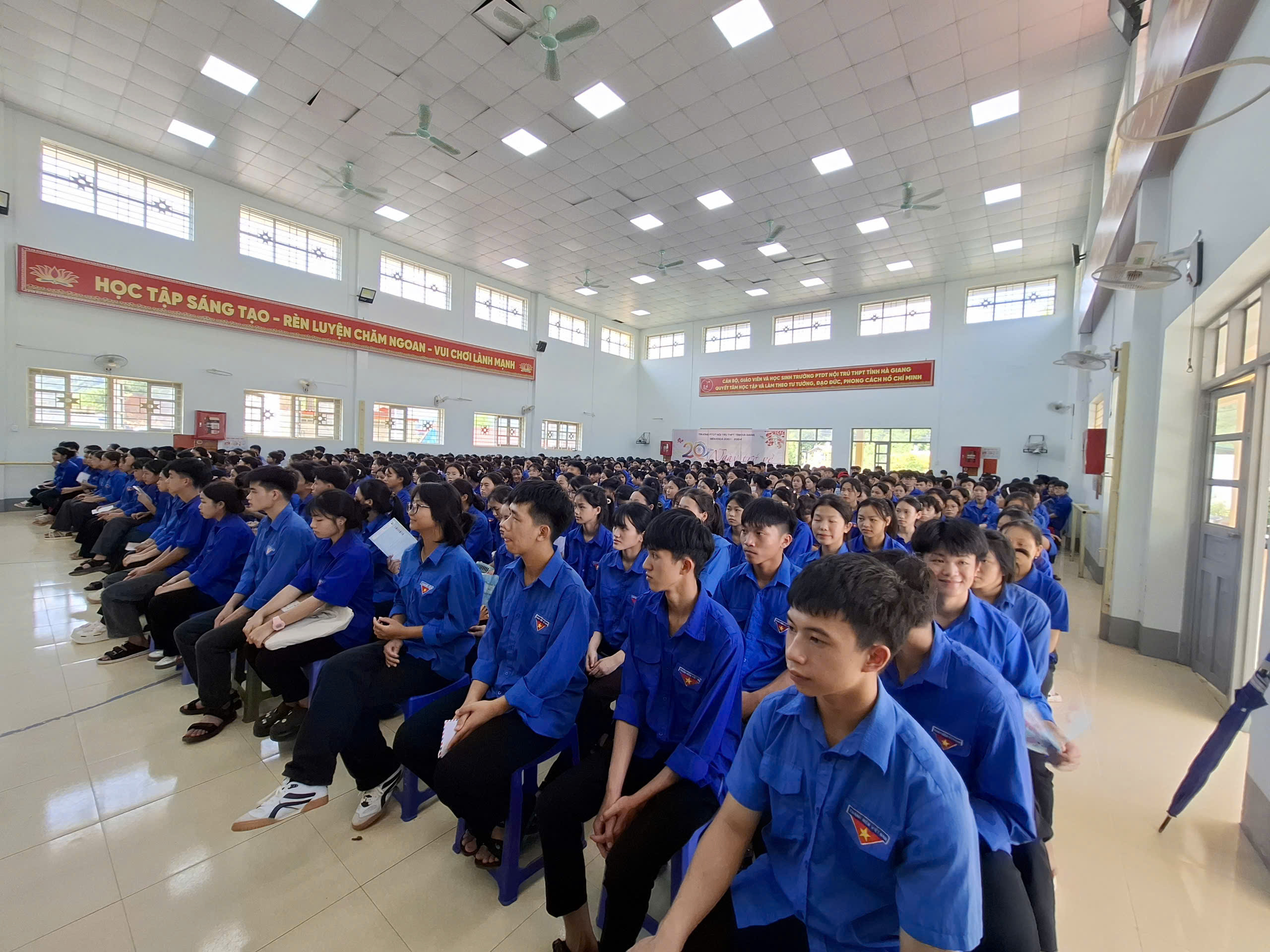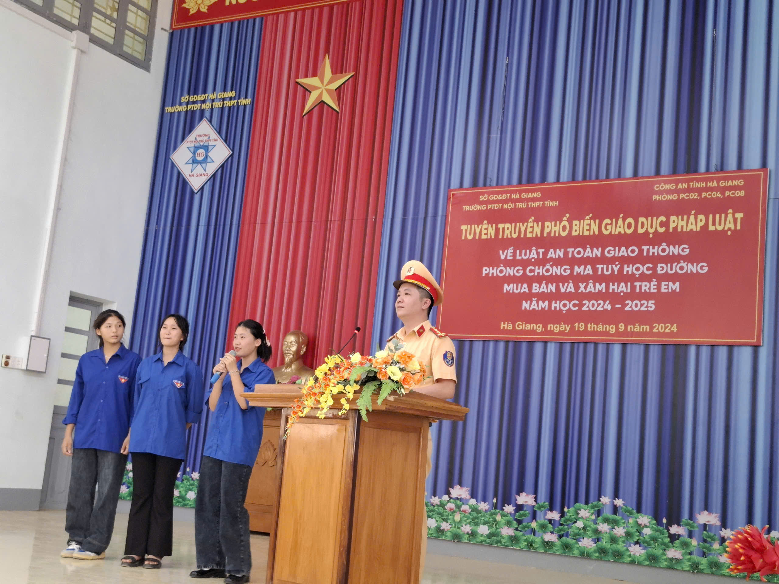 Đến tham dự buổi tuyên truyền, giáo dục Luật an toàn giao thông đường bộ cho các em học sinh và các cán bộ, giáo viên trong trường có Thượng tá Lê Trung Thuần (Phó trưởng phòng CSGT Công an tỉnh Hà Giang), Ban giám hiệu nhà trường, 63 giáo viên và 565 học sinh trường Trường PTDT nội trú THPT tỉnh Hà Giang.