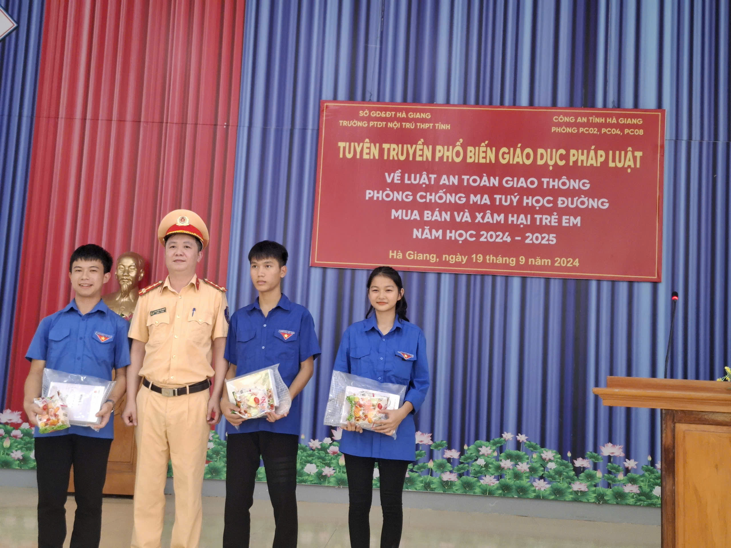 Trong buổi tuyên truyền, Phòng CSGT Công an tỉnh Hà Giang đã trao tặng 10.000.000 đồng cho 2 em học sinh có hoàn cảnh khó khăn của trường, ngoài ra các em học sinh cũng thực hiện ký bản cam kết về việc chấp hành pháp luật về đảm bảo trật tự an toàn giao thông. Đặc biệt tuyên truyền các em học sinh còn tích cực tham gia trả lời câu hỏi về Luật giao thông đường bộ.