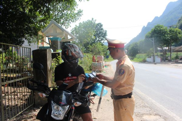Sau khi triển khai nhiệm vụ, CSGT đã phát hiện xe mô tô BKS: 23H1- 281.xx do Đặng Văn T (sinh năm 1989, ở tại huyện Vị Xuyên, Hà Giang) điều khiển được xác định chạy quá tốc độ 58/50km/h. Ban đầu, khi bị tổ công tác dừng xe, người điều khiển phương tiện vẫn tỏ ra ngơ ngác chưa hiểu mình đã vi phạm lỗi gì. Nhưng sau khi vào chốt và được cán bộ CSGT cho xem lại hình ảnh vi phạm chạy quá tốc độ thì tài xế đã công nhận lỗi vi phạm của mình. “Do đường rộng và thoáng nên nhấp ga nhẹ mà không nghĩ là mình chạy quá tốc độ…”, tài xế trình bày.