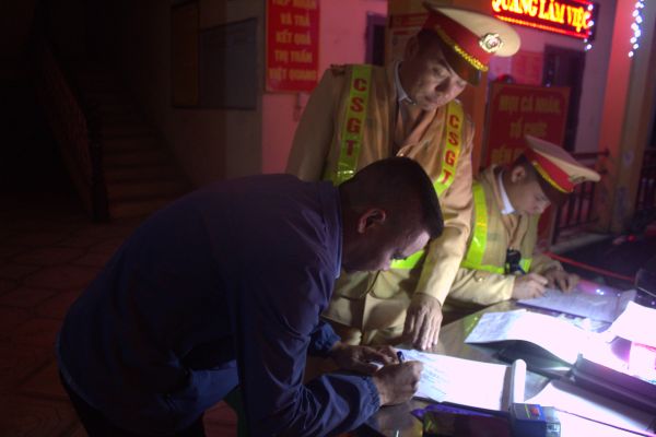 Người vi phạm nồng độ cồn ký biên bản xử phạt hành chính.