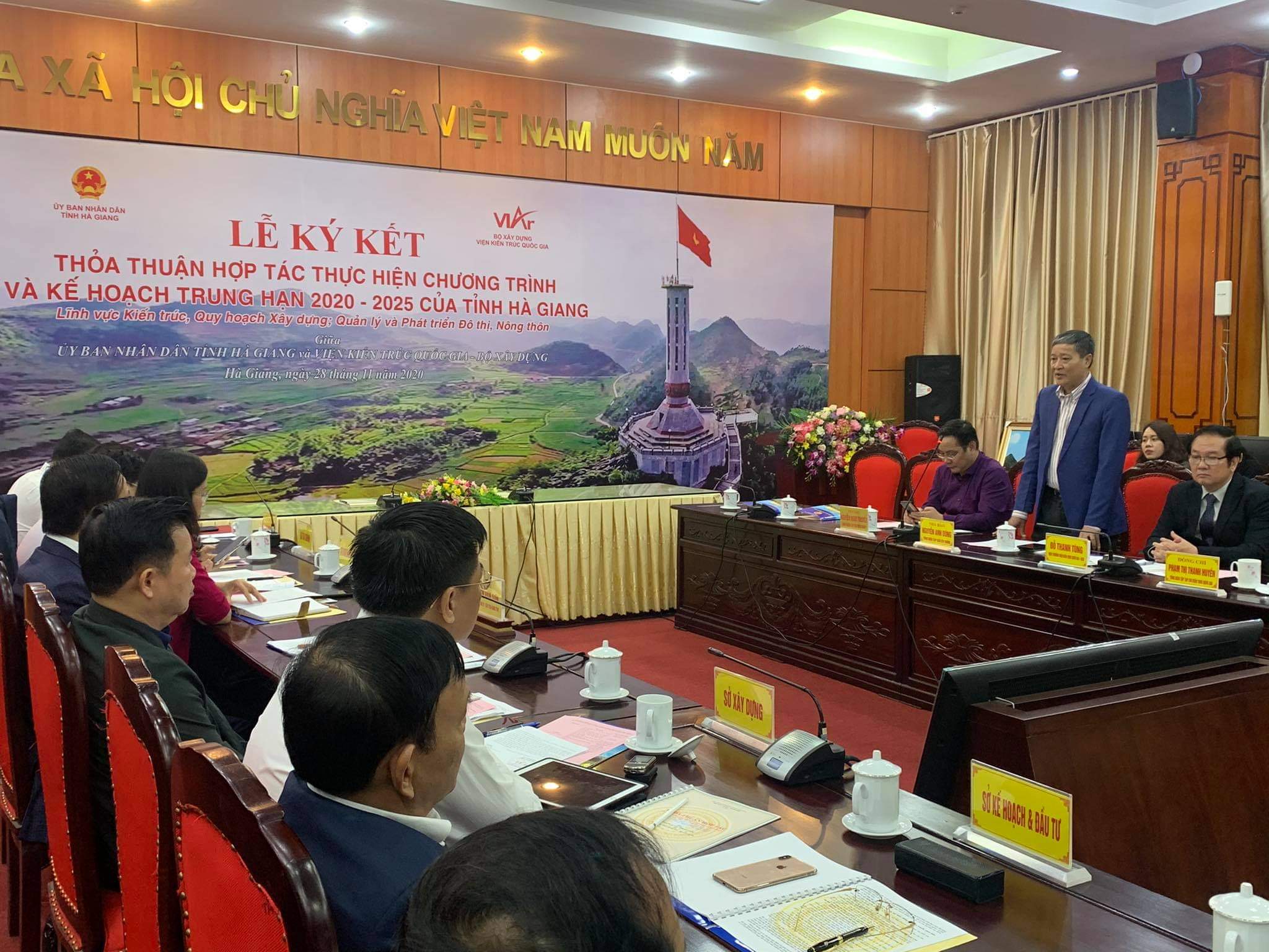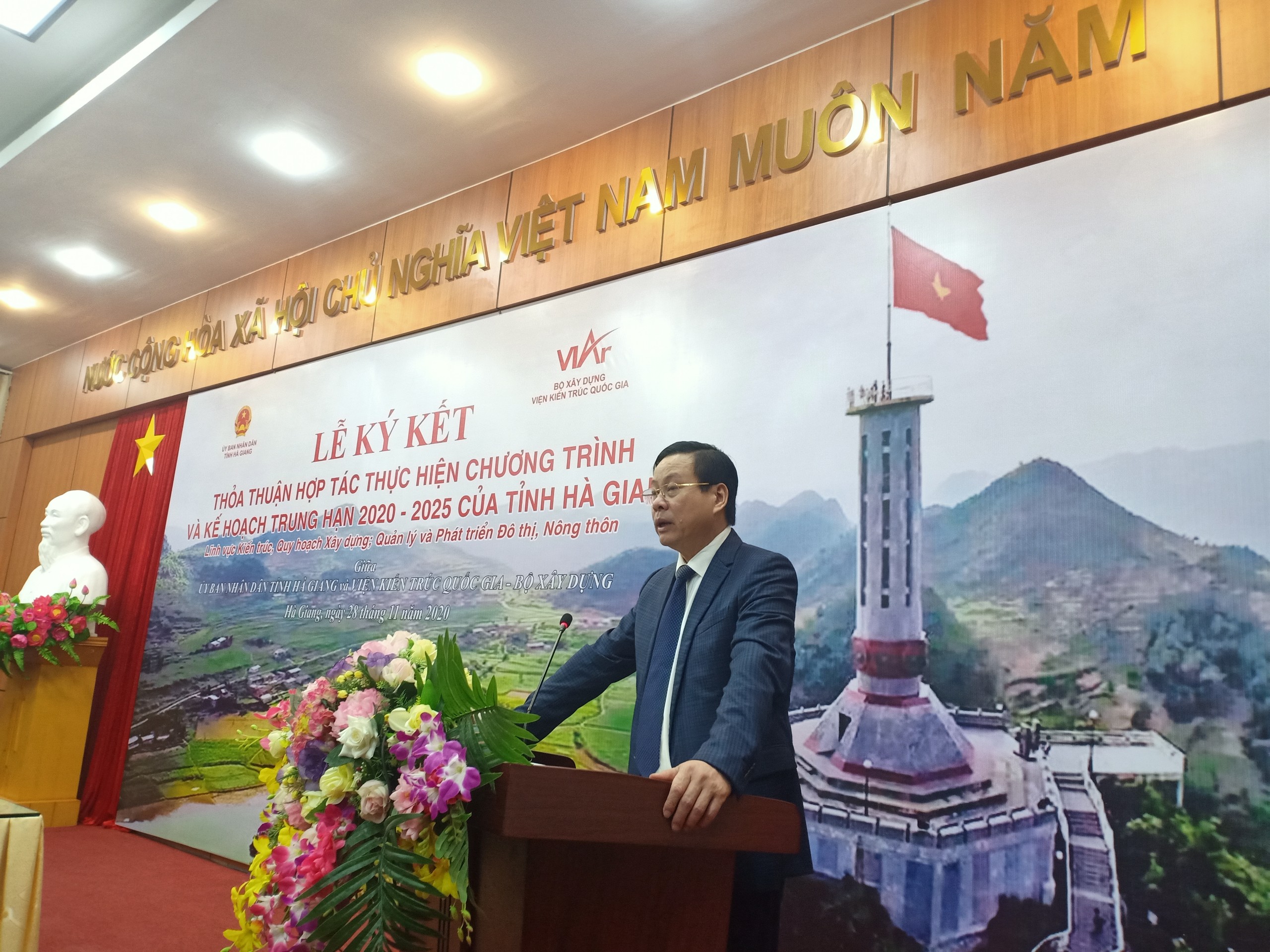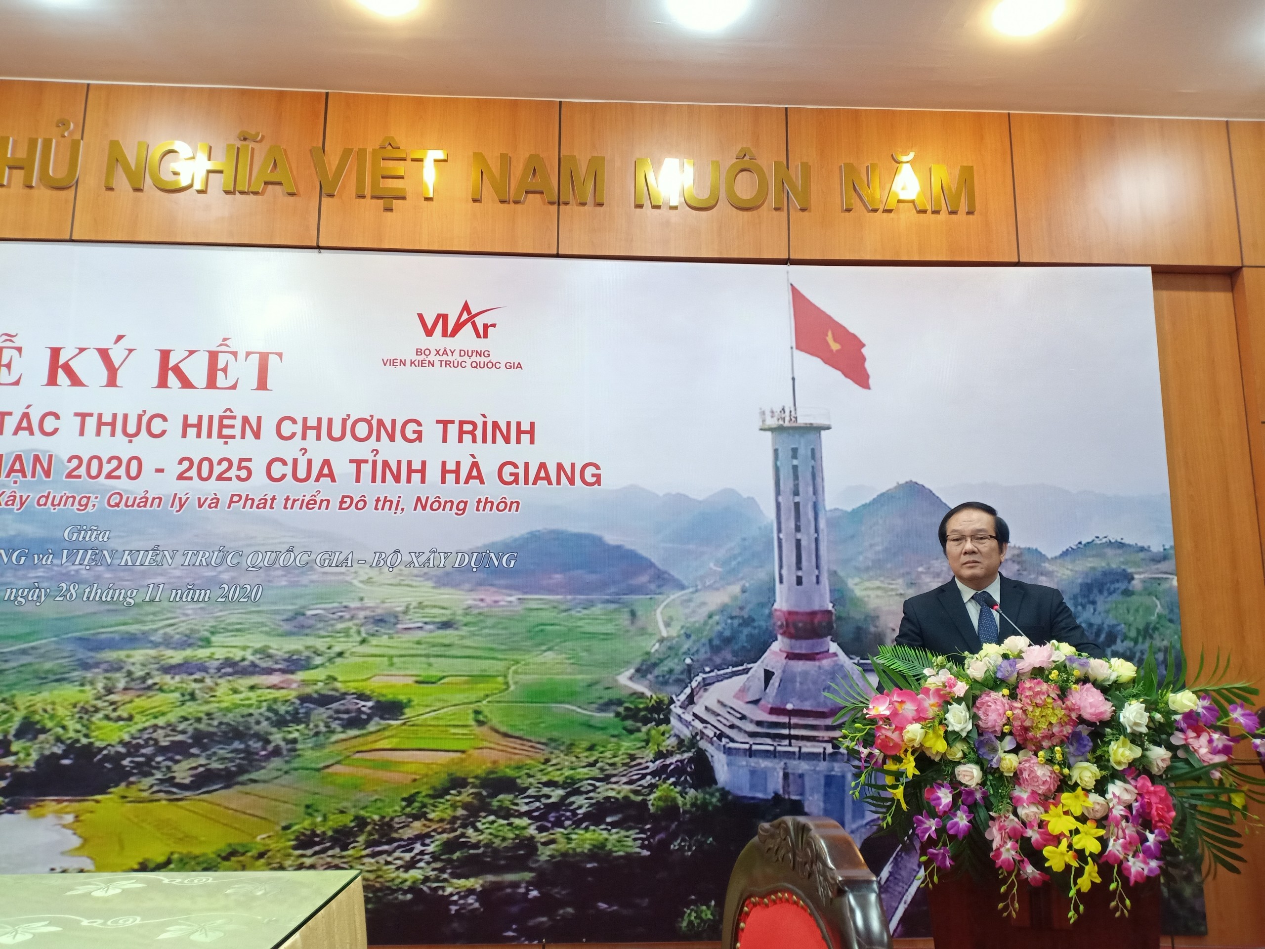 Phát biểu tại buổi lễ, nhà báo Nguyễn Anh Dũng, Trưởng ban Tuyên giáo Đảng ủy Bộ Xây dựng đánh giá cao công tác quy hoạch, kiến trúc và quản lý phát triển đô thị của Hà Giang trong những năm qua. Tuy nhiên, để đưa Hà Giang phát triển bền vững, phù hợp với yêu cầu của thời kỳ mới, tỉnh cần có nhiều giải pháp đồng bộ để thu hút các nhà đầu tư trong và ngoài nước. Việc UBND tỉnh ký kết với Viện kiến trúc Quốc gia sẽ tạo đà để các chuyên gia, các nhà khoa học góp sức để các ban ngành của Hà Giang tăng cường hơn trong lĩnh vực kiến trúc, quy hoạch xây dựng, quản lý và phát triển đô thị. Hà Giang cần chú trọng nhiều về bản sắc đô thị để tạo điểm nhấn, phát triển văn hóa truyền thống.