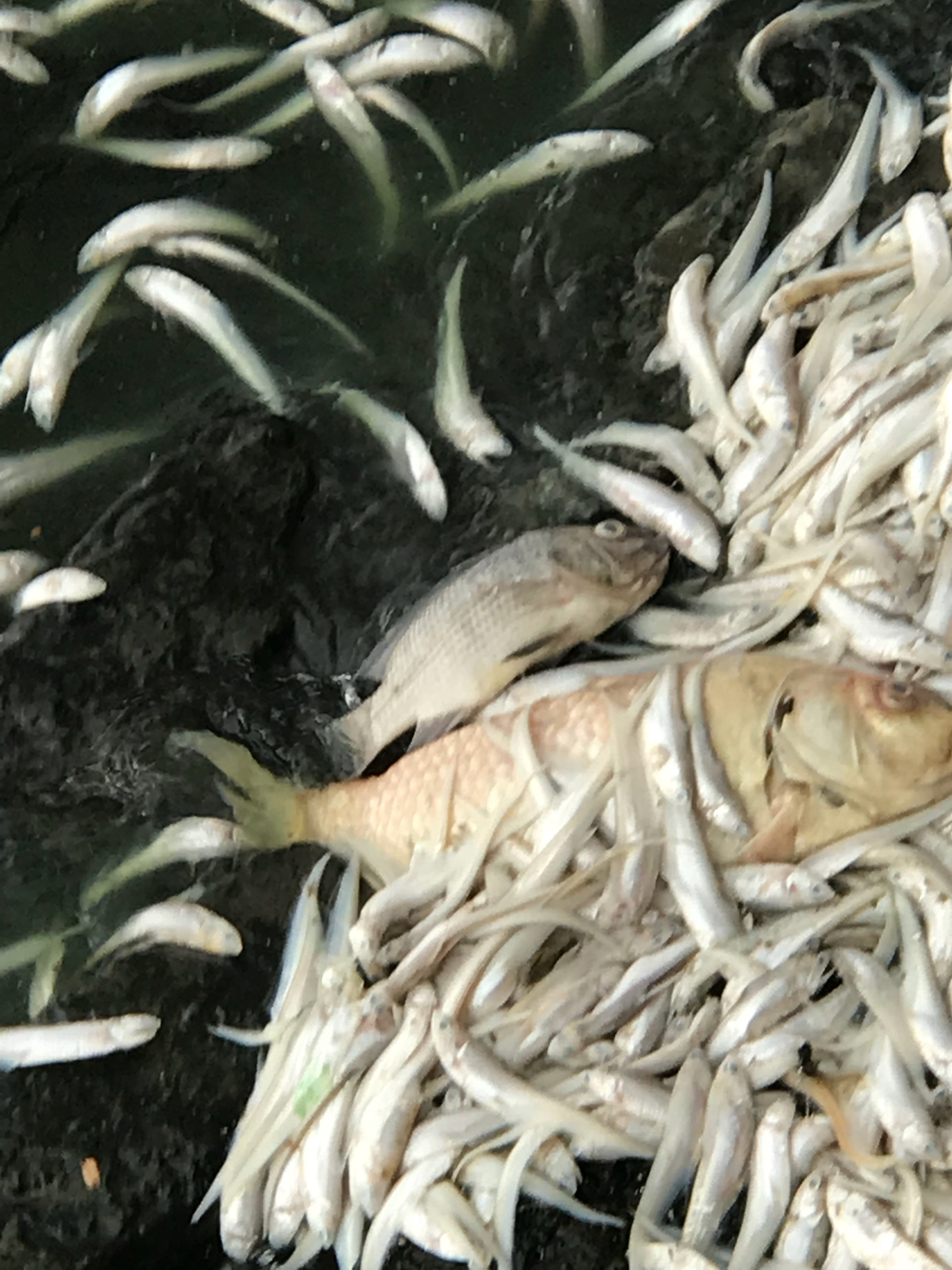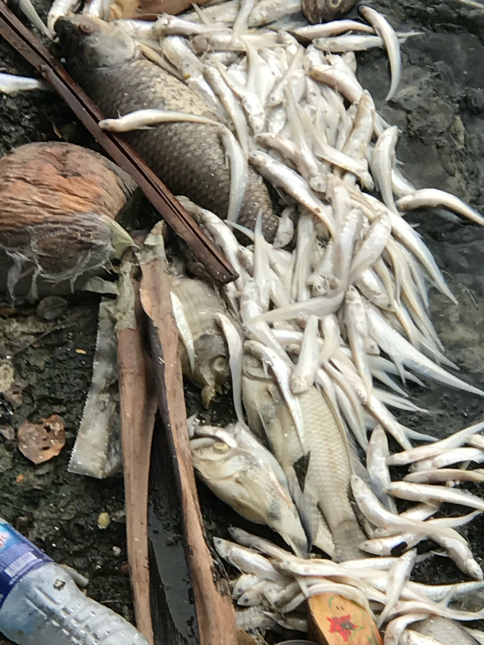 Theo người dân ở đây cho biết, hiện tượng cá chết trên đã có từ ngày hôm qua, ngày 8/7, nhưng hôm nay thì cá mới chết nhiều như vậy. Khác với lần trước, lần này cá chết đa phần là cá bé.