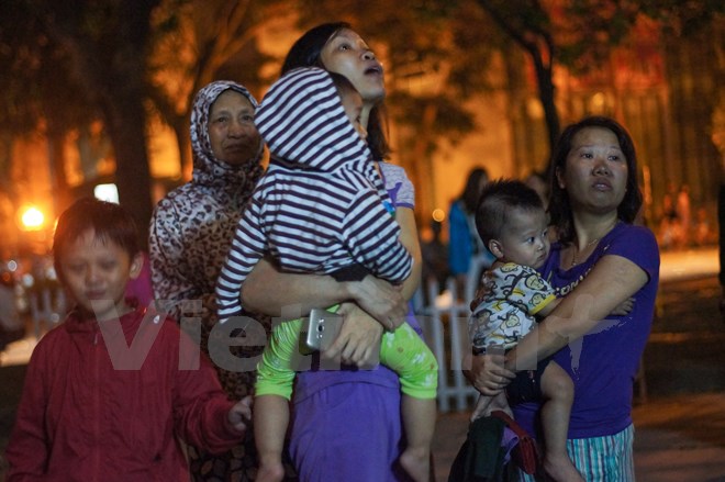 | Nhiều em nhỏ ngơ ngác khi đang ngủ ngon nhưng lúc tỉnh dậy lại thấy đang ở ngoài đường trong cảnh hỗn loạn. (Ảnh: PV/Vietnam+) |