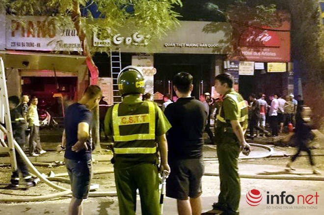 Công an quận Hoàn Kiếm, Hà Nội, tổ công tác Y5/141 đang trực chốt cũng phong toả 2 đầu đường giáp với Hàng Bài và Ngô Quyền. Sau 30 phút cứu hoả cơ bản đám cháy tại nhà hàng số nhà 22 Hai Bà Trưng đã được khống chế.