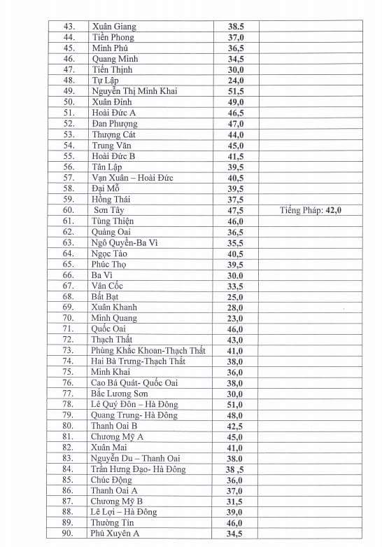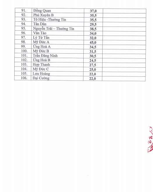Điểm chuẩn của 106 trường THPT như sau: