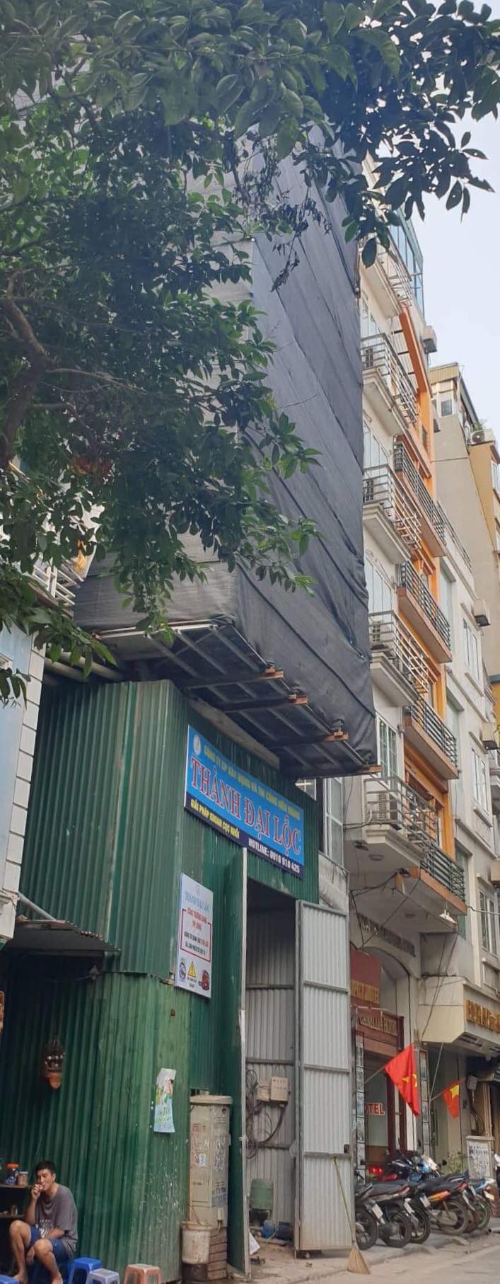 Trong quá trình xây dựng, phía ngoài được che chắn kín đáo tuyệt nhiên không nhìn thấy về số tầng vi phạm, nhưng phần phía sau lưng hoàn toàn bị bỏ không. Sử dụng tời kéo vật liệu thô sơ, không an toàn khi đưa vật liệu xây dựng lên trên cao, điều này gây nguy hiểm cho người tham gia đi lại trong ngõ, những hộ dân sinh sống phía sau công trình xây dựng, bụi bẩn ô nhiễm rồi đến cả tính mạng của chính họ.