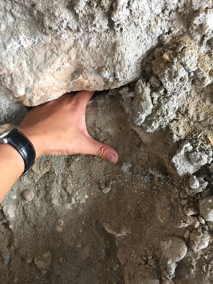 điểm kè đá không có sự kết nối với nền đất phía trong, vữa có thể dùng tay để bẻ