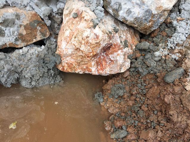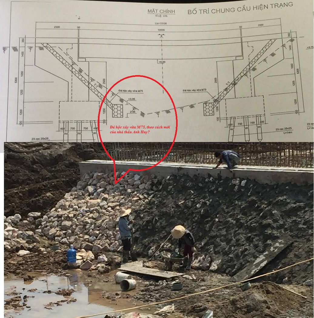 đá hộc bằng vữa M75 đã bị nhà thầu Anh Huy “đốt cháy giai đoạn” bằng cách xếp đá