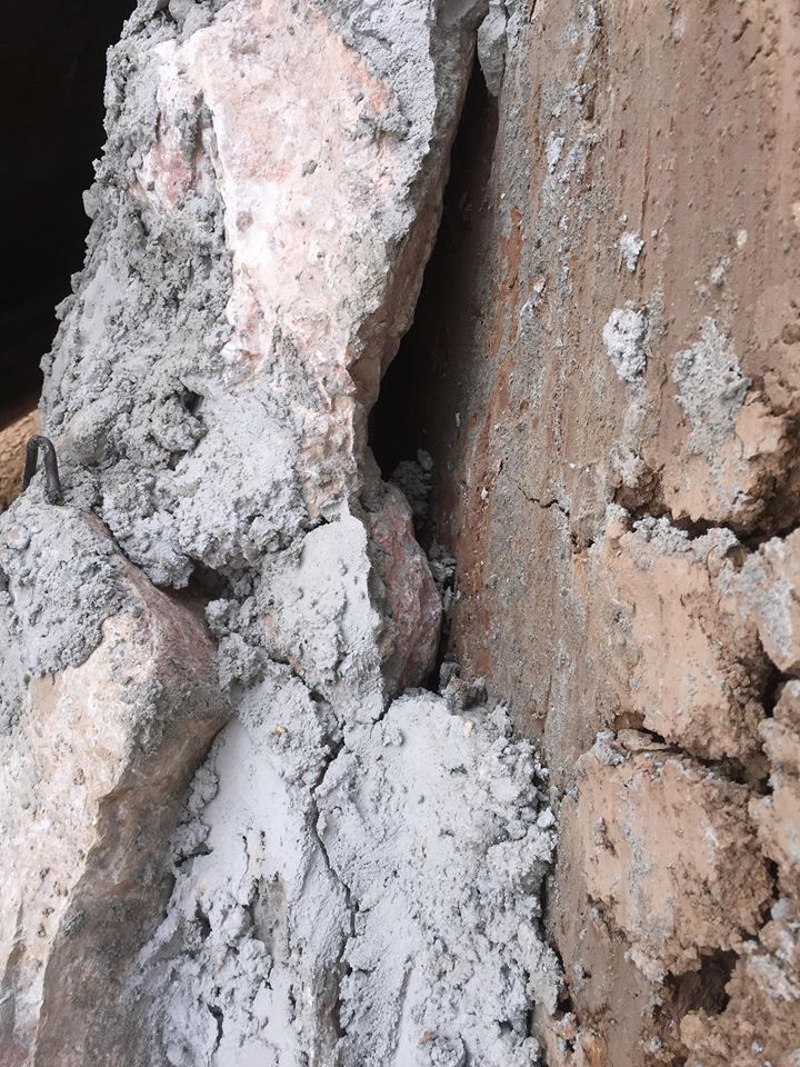 những khe hở rộng tới 10cm, thậm chí nhiều chỗ không có vữa, dùng tay không có