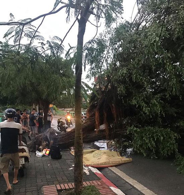 Lực lượng cảnh sát phòng cháy chữa cháy và CNCH Công an quận Tây Hồ thông tin một nam thanh niên 26 tuổi tử vong vào hồi 17h do một cây si lớn trên đường ven hồ Tây đổ trúng Nạn nhân được xác định danh tính là Nguyễn Hữu T. (sinh năm 1993, trú tại Xuân Đỉnh, quận Bắc Từ Liêm, Hà Nội). Ảnh: FB Nguyễn Thu Hiên.