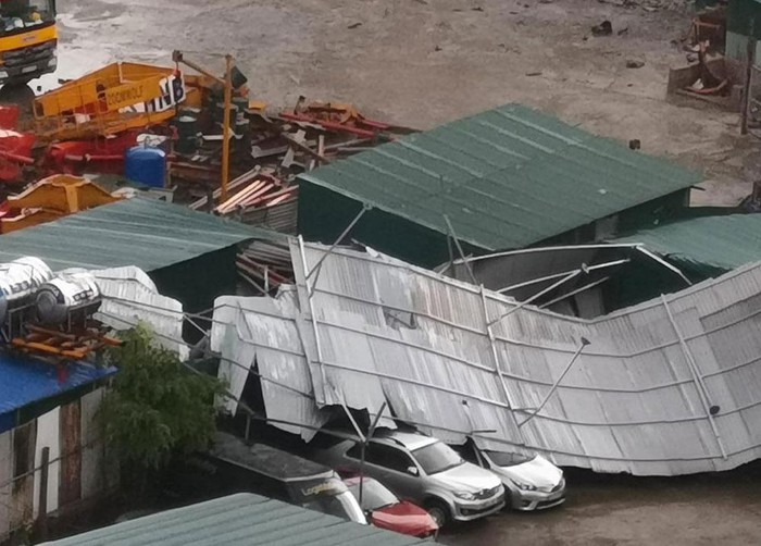 Mái tôn bãi gửi xe Trung Kính cũng bị thổi bay.Ảnh: FB Dang Khanh