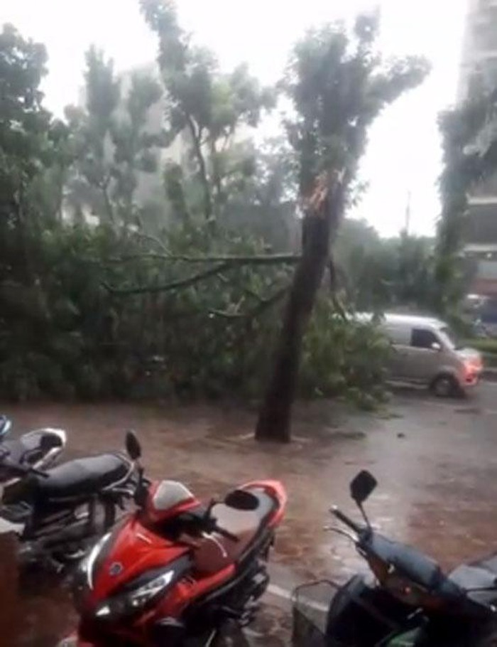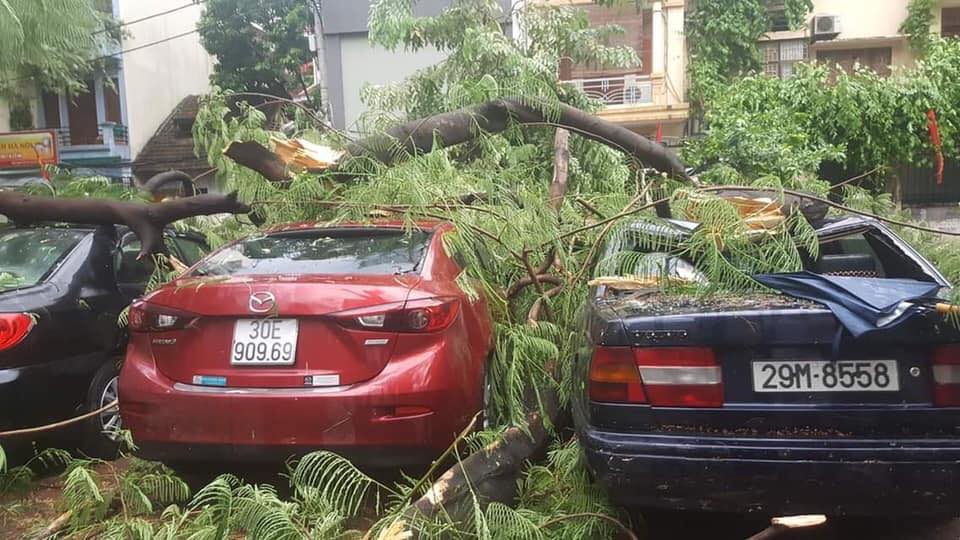 Cây xanh đổ rạp gây thiệt hại cho các phương tiện tham gia giao thông