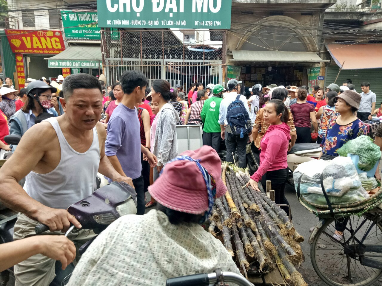 | Đến khoảng 8h, khi lực lượng an ninh di chuyển ra hai đầu đường điều tiết giao thông. Một số tiểu thương quá khích đã mang xe hàng chặn ngang đường không cho dòng phương tiện di chuyển. |