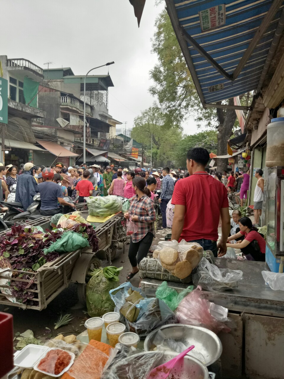 | Do đó, các tiểu thương đã tràn ra đường để phản đối và mang hàng hóa ra đường bầy bán nên gây ùn tắc giao thông, các phương tiện không di chuyển được. |
