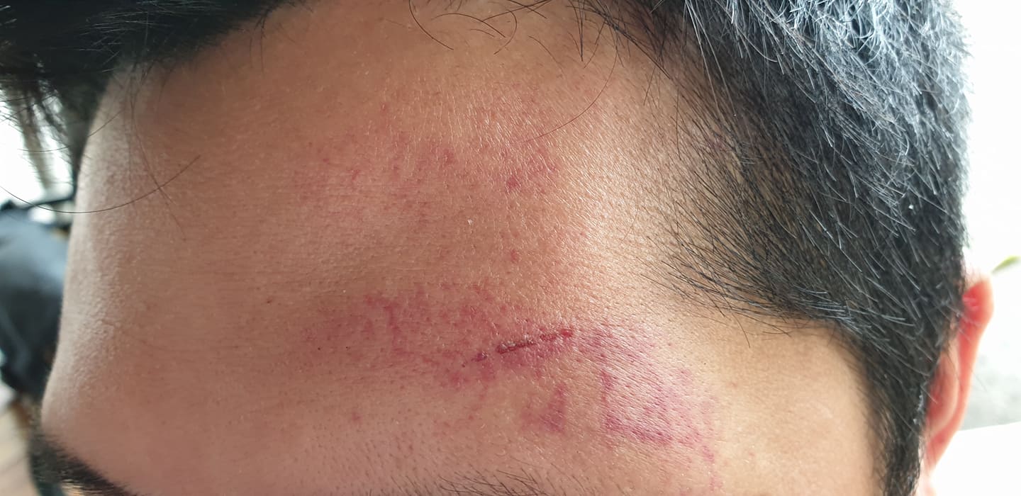 | Cận cảnh vết thương ở vùng đầu của anh T |