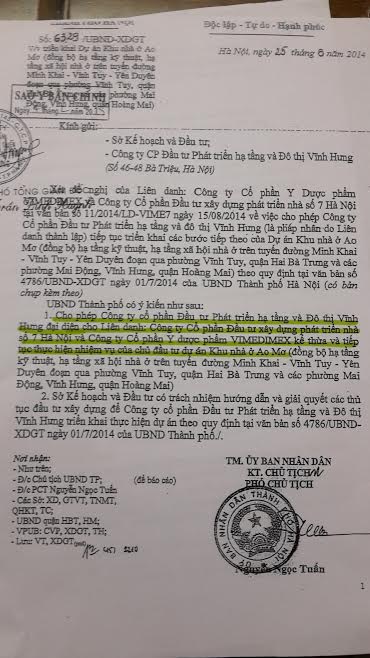 Cần phải nói thêm rằng: Dự án khu nhà ở ao Mơ, trong đó có khu đất của tổ dân phố 30 phường Vĩnh Hưng, quận Hoàng Mai do Công ty cổ phần Đầu tư phát triển hạ tầng và đô thị Vĩnh Hưng làm chủ đầu tư là dự án nhà ở thương mại. Những đề xuất của chủ đầu tư vẫn đang trong quá trình thẩm định, chờ UBND TP. Hà Nội phê duyệt. Đến nay, đại diện chủ đầu tư cũng chưa hề một lần đến gặp gỡ, thỏa thuận với người dân ở tổ dân phố nói trên để lấy đất thực hiện dự án. Nhưng những ngày gần đây, Hội đồng Bồi thường, hỗ trợ, tái định cư của quận Hoàng Mai đã liên tục phát đi thông báo thu hồi đất và cử cán bộ đến đo đạc, kiểm đếm tài sản, lập phương án bồi thường giải phóng mặt bằng tại tổ dân phố 30 khiến người dân vô cùng uất ức.