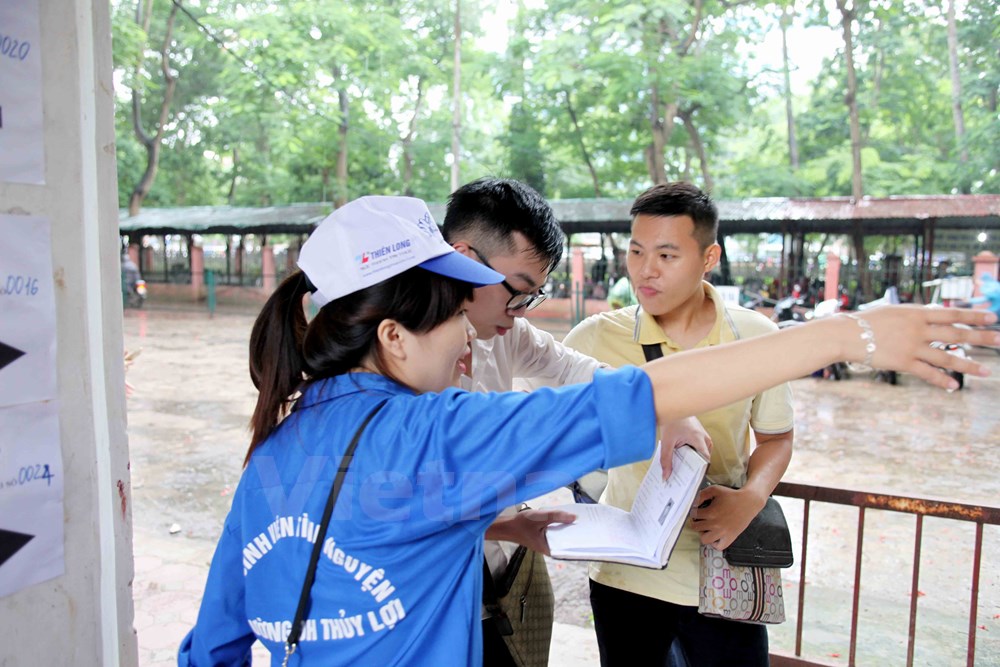 | Sinh viên tình nguyện hướng dẫn cho các thí sinh tìm được phòng thi của mình. (Ảnh: Doãn Đức/Vietnam+) |