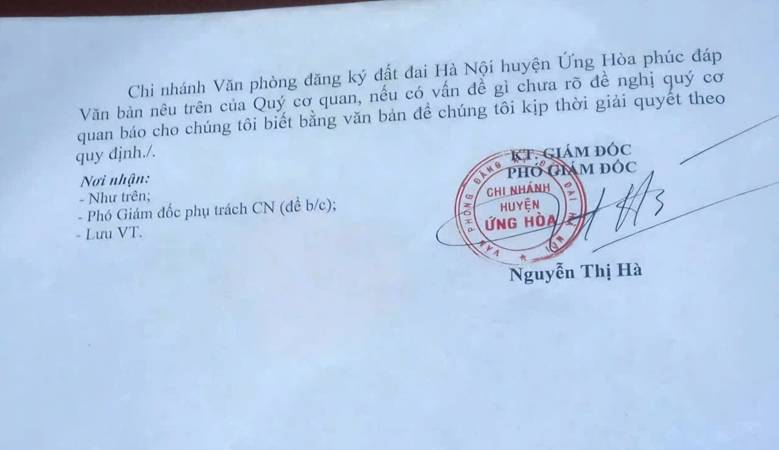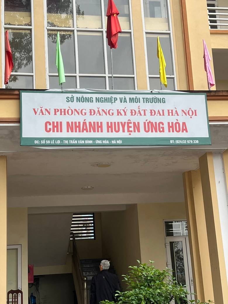 Minh chứng: Ngay tại văn phòng đăng ký đất đai chi nhánh huyện Ứng Hòa vẫn còn biển nội dung biển (Sở Nông nghiệp và Môi trường – Văn phòng đăng ký đất đai Hà Nội chi nhánh huyện Ứng Hòa) địa chỉ số 59 Lê Lợi, thị trấn Vân Đình, Ứng Hòa, Hà Nội. Tại văn bản do bà Phó Giám đốc văn phòng đất đai ký ngày 27 tháng 11 năm 2025 con dấu có nội dung Văn phòng Đăng ký đất đai thành phố Hà Nội, ở giữa chi nhánh huyện Ứng Hòa (văn bản mới nhất trả lời chi cục thi hành án khu vực 12, thành phố Hà Nội).