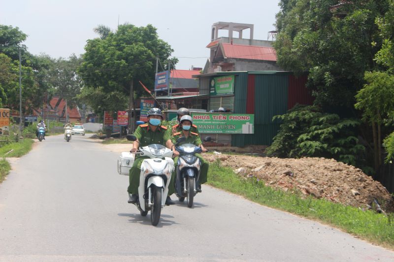 Tổ công tác tuần tra lưu động số 5 Công an huyện Sóc Sơn (Hà Nội) dừng phương tiện và kiểm tra giấy tờ của người đi đường.