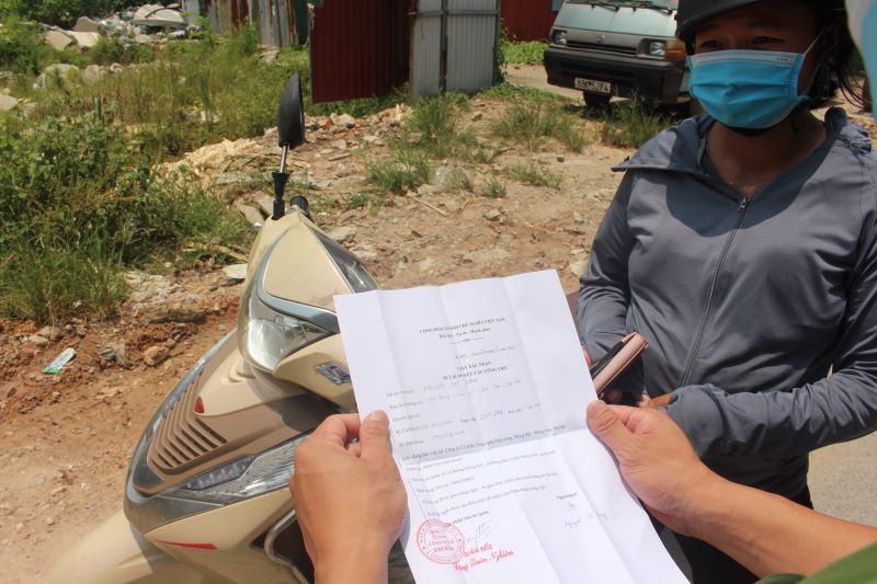 Người dân xuất trình giấy đi đường để tổ công tác kiểm tra.