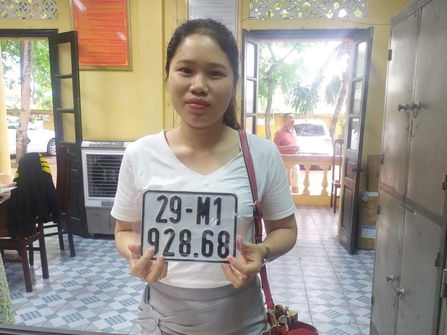 Chỉ vài phút, Cô Hồng làm xong các thủ tục để bấm biển số và nhận biển. “Tôi thấy việc này rất tiện lợi cho bản thân và người dân có nhu cầu đăng ký xe máy hơn rất nhiều so với trước đây” cô Hồng nói.