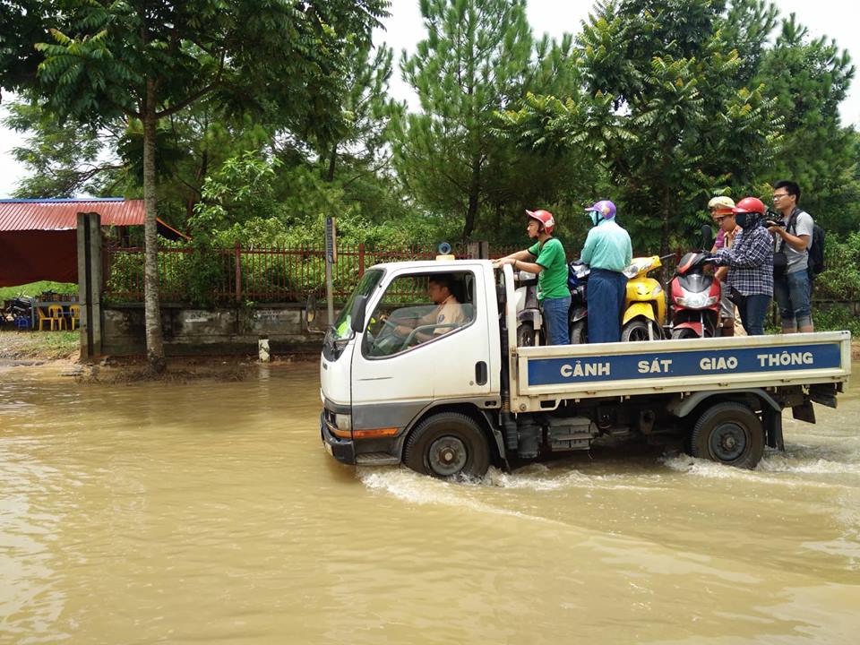 Cũng trong ngày 31/7, ở một số khu vực thuộc Đại lộ Thăng Long, đường liên huyện tại Quốc Oai, Chương Mỹ, Phòng Cảnh sát giao thông CATP Hà Nội đã bố trí lực lượng phối hợp với công an các huyện dùng xe chuyên dụng giúp nhân dân lưu thông qua khu vực ngập úng.
