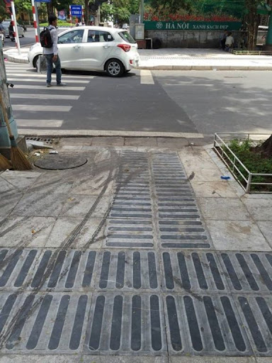 Vỉa hè đã thiết kế lối đi (có gờ sọc) cho người khuyết tật.