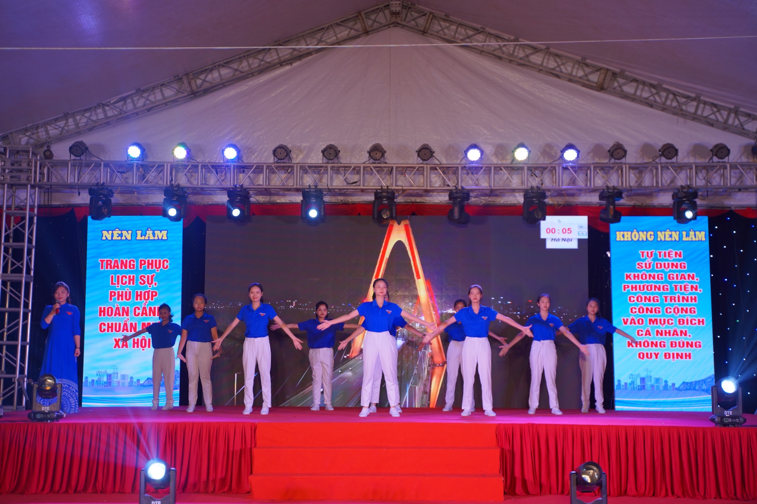 Phần thuyết trình: Mỗi đội cử 1 tuyên truyền viên giỏi thuyết trình về vai trò, trách nhiệm của thanh niên trong xây dựng “Người Hà Nội - Hào hoa - Thanh lịch - Nghĩa tình - Văn minh” gắn với việc thực hiện 2 bộ quy tắc ứng xử trên địa bàn thành phố.
