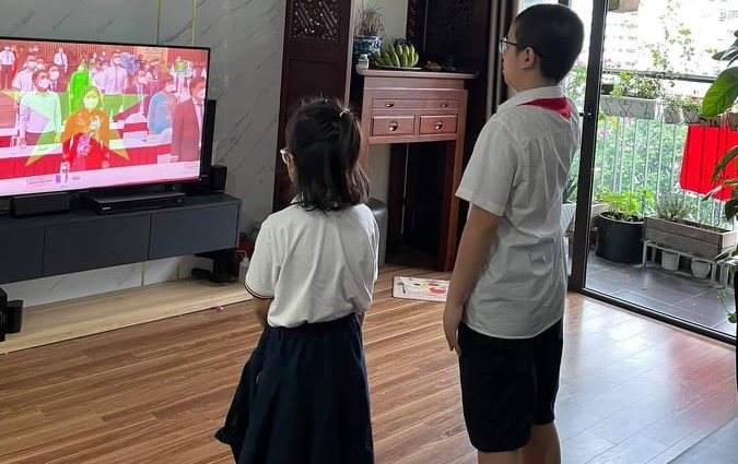 “Từ sáng sớm tôi đã gọi các con dậy chuẩn bị trang phục, đồ dùng học tập, máy tính để các con đón lễ khai giảng”. Chị Nguyễn Xuân cho biết thêm.